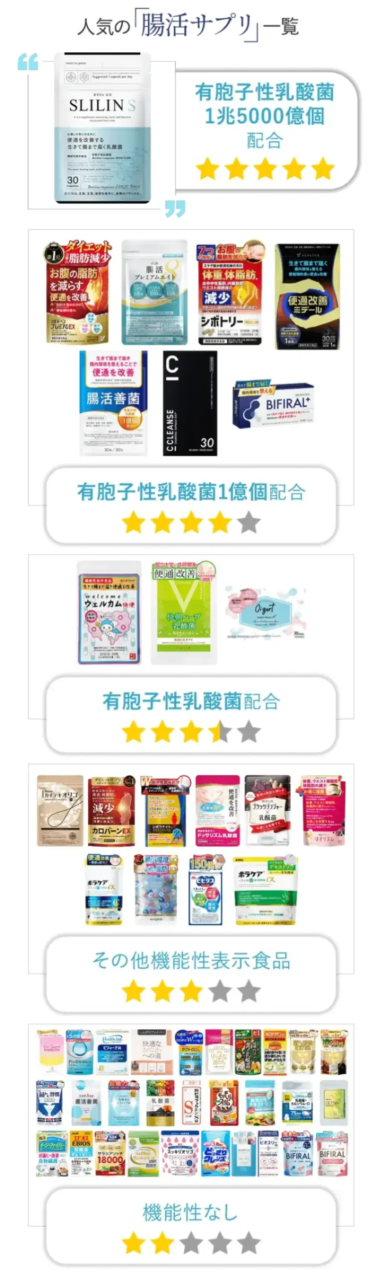 このように比較すると、スリリンSは、腸活に一番効果的という結果になりました。