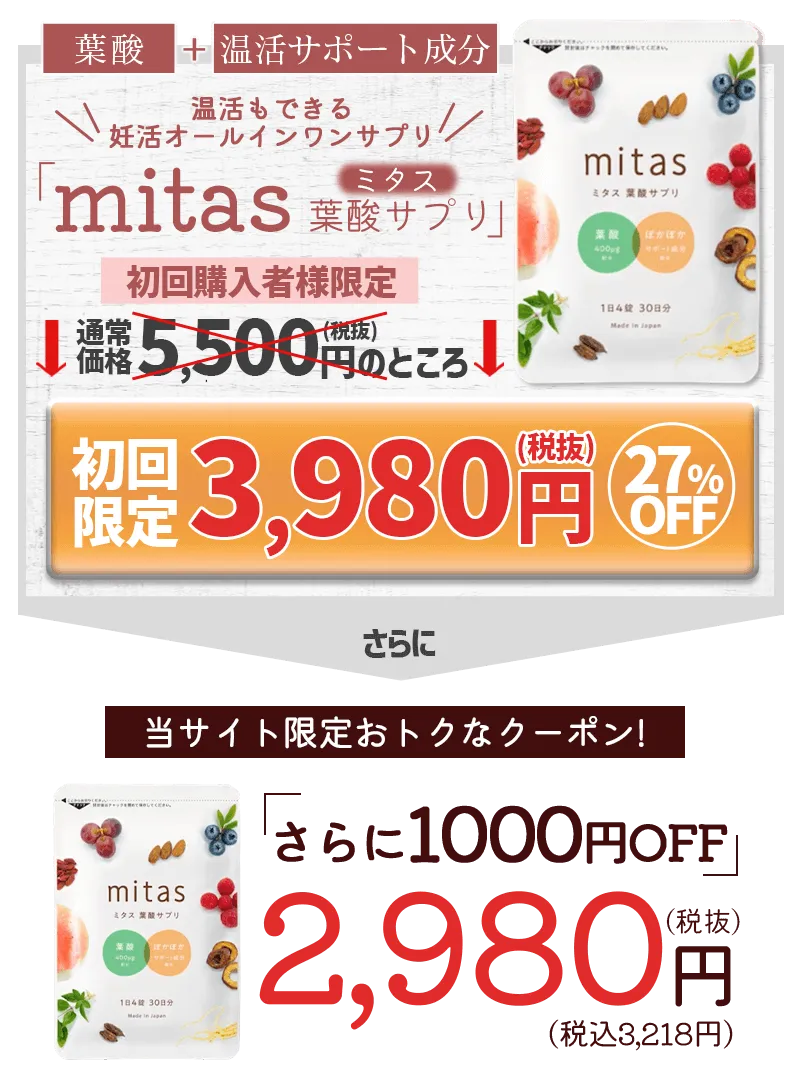 この機会に、ミタスで妊娠体質を手に入れて、1日でも早く妊活を成功させて幸せな家庭を手に入れましょう!
