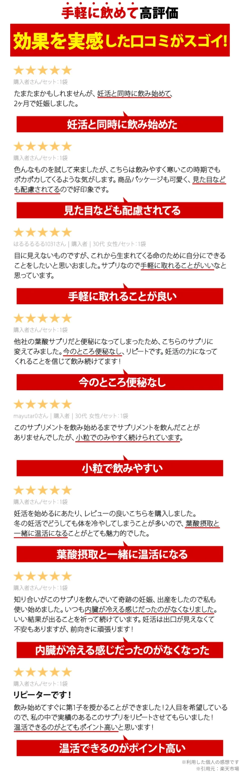 もちろん、厚労省推奨のモノグルタミン酸型葉酸を使ってますので、普通の葉酸に比べて圧倒的な吸収率です。